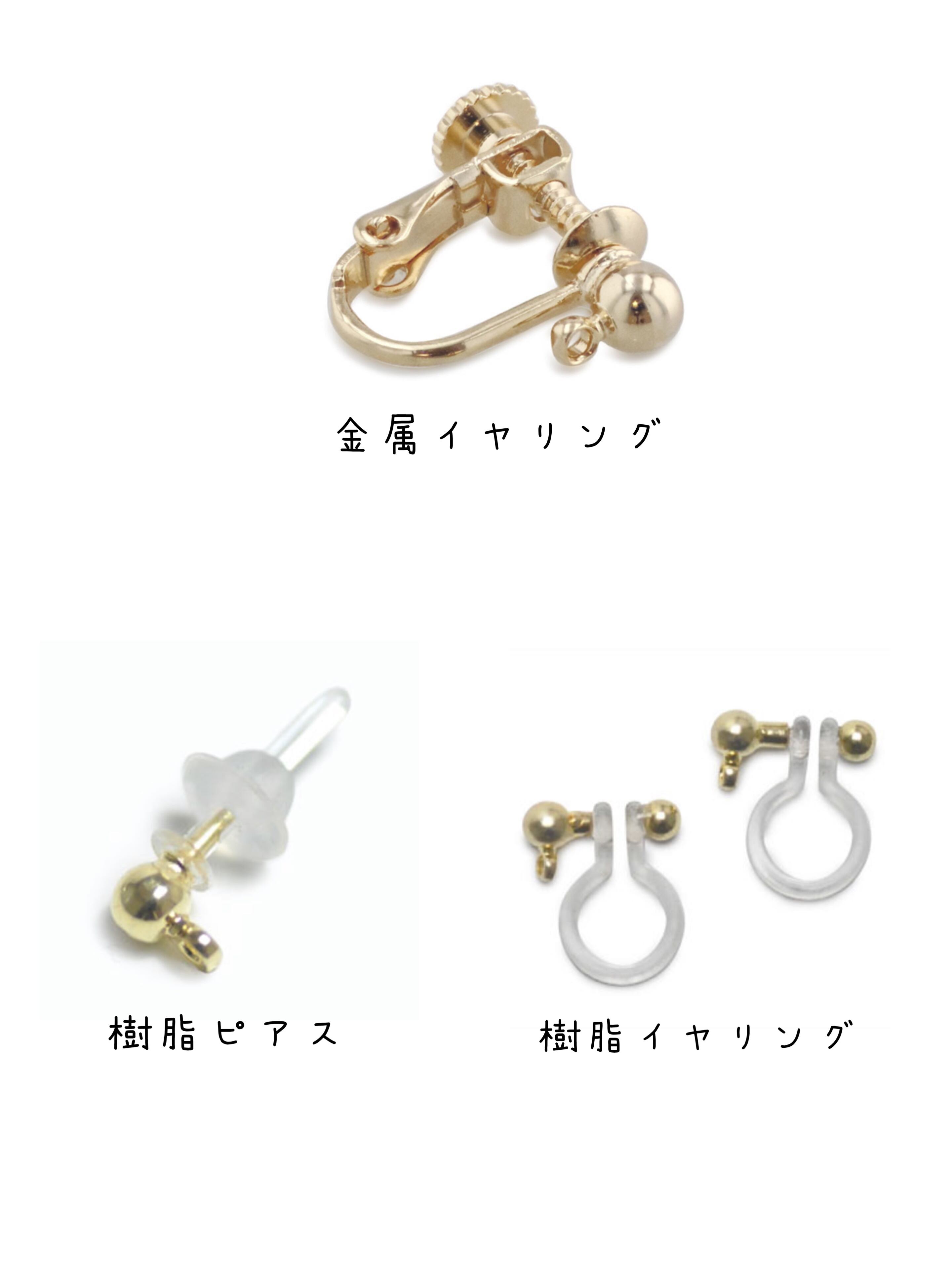 ◯金属イヤリング、樹脂ピアス、樹脂イヤリングに変更可能です。備考欄にてお申し付けください。