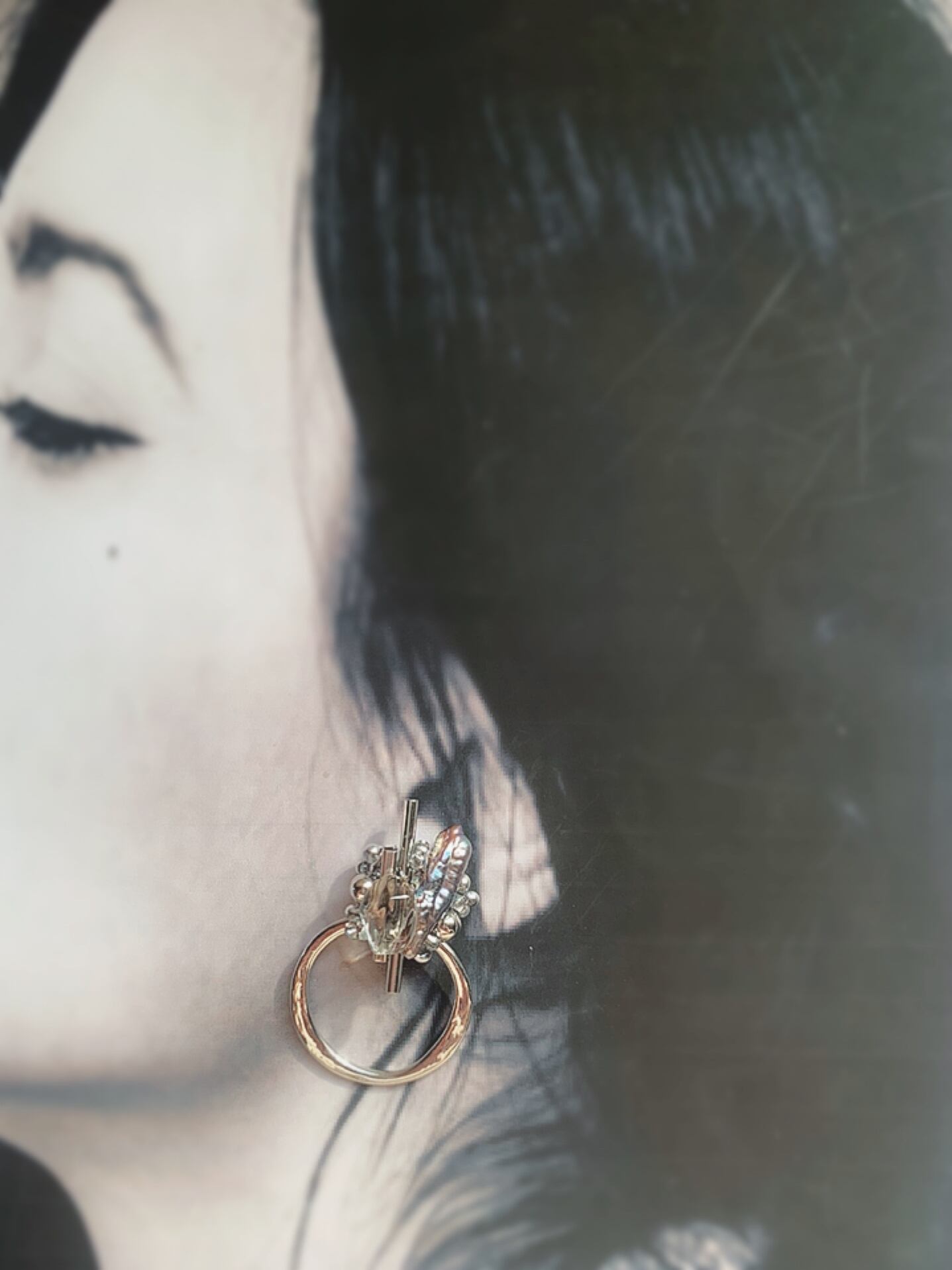 ◯ケシ染めの変形パールが覗く上品なビジューピアス。普段使いから特別な日まで幅広くお使いいただけます。